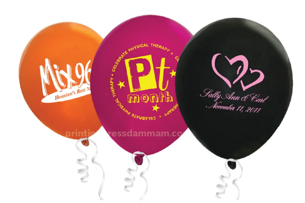 Balloon printing services in Saudi Arabia offer customized balloons for events, parties, corporate functions, and promotional campaigns. Using high-quality latex balloons, these services provide vibrant, eye-catching prints through screen or digital printing methods. We offer 12 inch latex balloon with single color print in both side branding. Ideal for grand openings, exhibitions, weddings, or festive occasions, printed balloons add a fun and professional touch. Fast turnaround, bulk ordering, and delivery options make balloon print in Saudi Arabia a popular choice for impactful visual marketing and memorable celebrations across the kingdom.