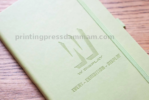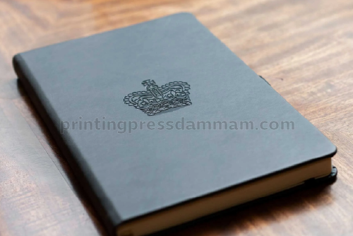 Foil stamping uses metallic foil gold, silver, or custom colors pressed onto the cover to highlight text or graphics. It creates a luxurious, eye-catching effect that boosts your brand’s prestige