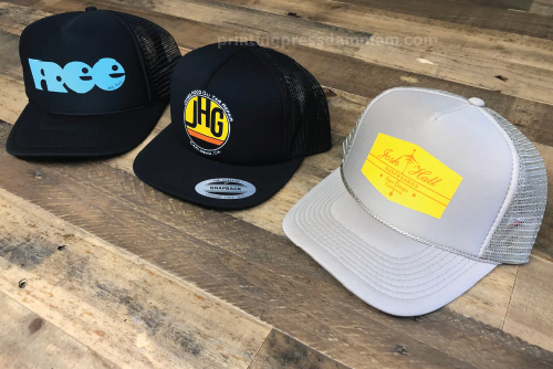 We print on baseball caps, snapbacks, trucker hats, beanies, and more, depending on the material and print method.