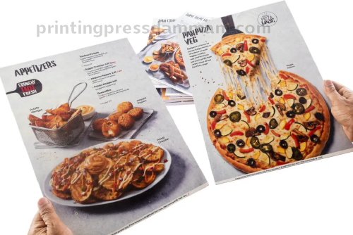 Offset menu print delivers high-quality, consistent results ideal for large volumes. It offers vibrant colors, sharp text, and is cost-effective for bulk restaurant and café menu production.