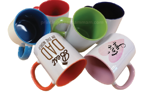 Inner color showcases bright interior hues paired with personalized outer designs, adding flair and character to gift or promotional mugs.