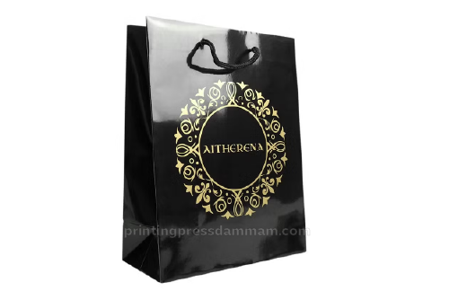 Foiling paper bags printing uses metallic finishes to create shiny, eye catching accents, adding luxury and elegance to branded packaging designs.