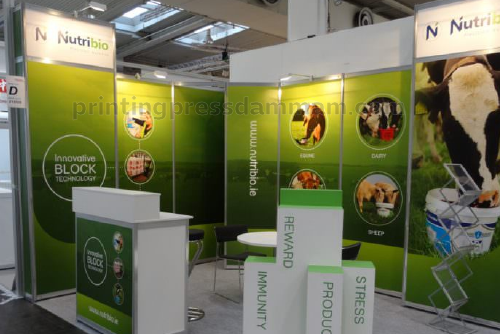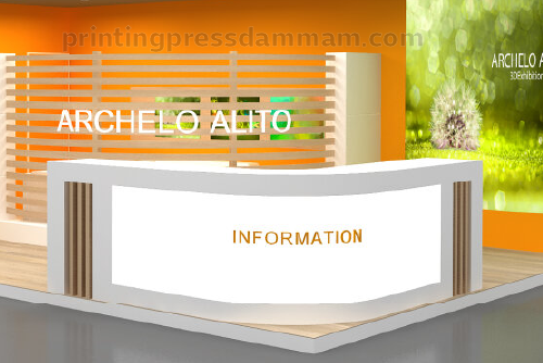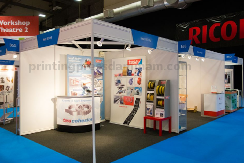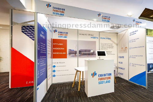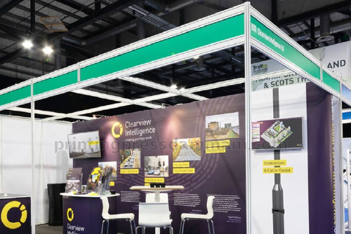 Exhibition counter printing adds branded graphics to counters, boosting visibility and professionalism, enhancing the overall impact of shell scheme booths.