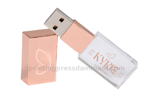 Crystal USB offers a luxurious look with engraved or UV printed branding, ideal for elegant corporate gifts and high end promotional use.