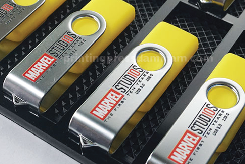 UV printing applies vibrant, full color images directly onto USB surfaces with high durability and resistance to scratches or fading.