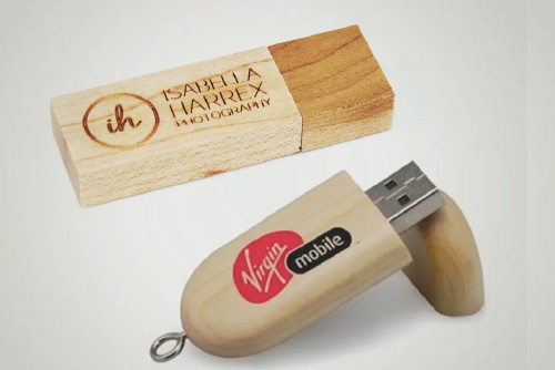 Wooden USB provides a natural, eco friendly look with laser engraving or UV printing, perfect for sustainable, stylish and unique brand promotions.