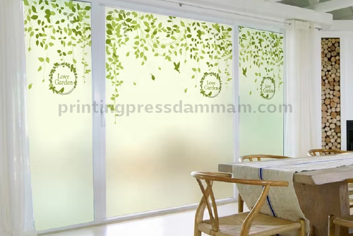 Frosted window films printing applies semi-transparent branded designs on glass, enhancing privacy while maintaining natural light and stylish branding.
